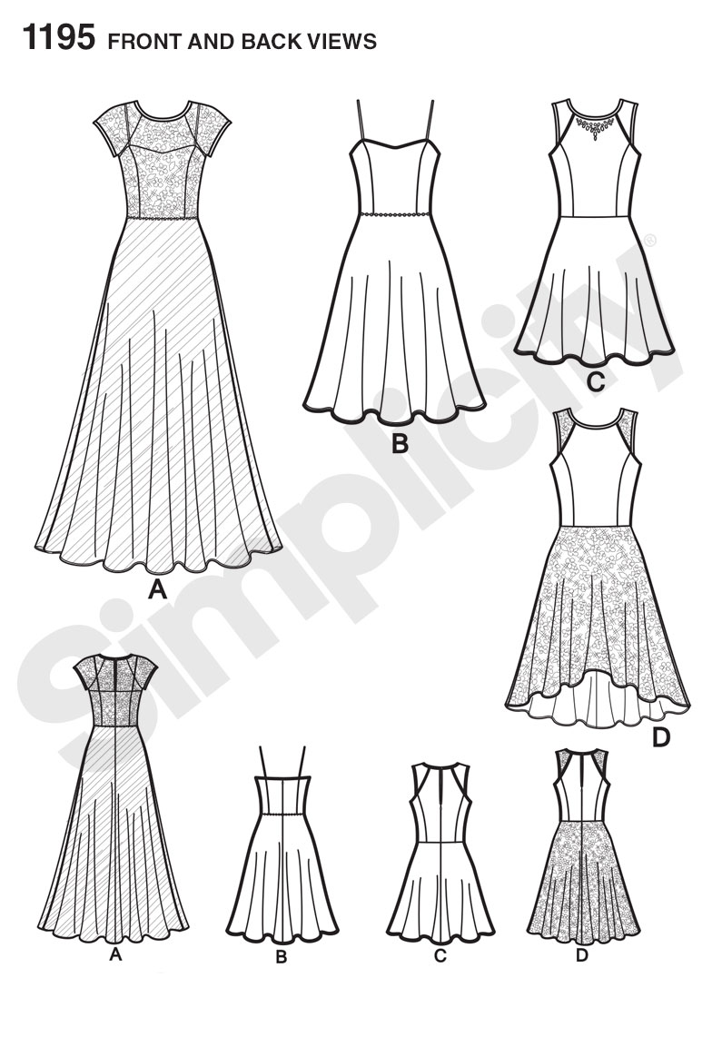 Misses' Sew Stylish dress can be made floor length with bodice and skirt overlays, knee length with straps, and sleeveless about the knee or high low with contrast yoke and skirt overlay.