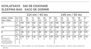 Cuddly sleeping bag in two variations with lots of leg room and a long zipper for easy getting in and out. View A is sleeveless, with tie bands and frills. View B has sleeves, bound edges and bands of contrasting fabric to adjust the snugness of the fit.