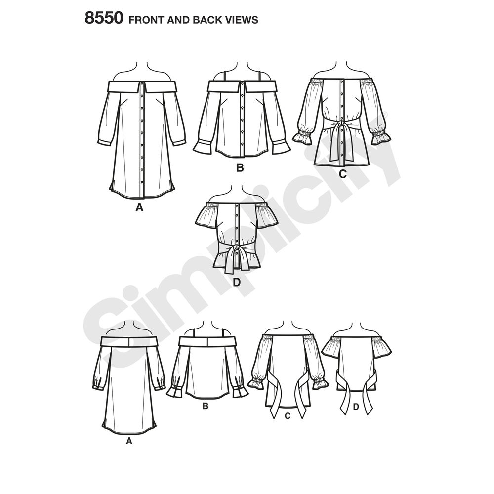 Available in both Misses and Women’s sizing, this off-the-shoulder dress, tunic, or top has options that include lapels, bra-friendly straps, tie waist, and a variety of sleeve styles. All views feature a button-front placket. Fit For Petite includes cutting lines to guide you to the perfect fit.
