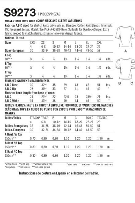 Misses' knit tops with scoop neck & options for gathered, pleated & cap sleeve.