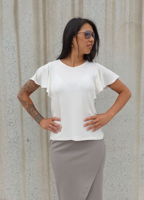 Get your spring style sorted. This top features a flounced sleeve, which is cleverly set into the side panelled design lines giving this style a feminine and easy feel and fit. Wear with jeans on the weekend or team it with pencil skirt for your working week.
