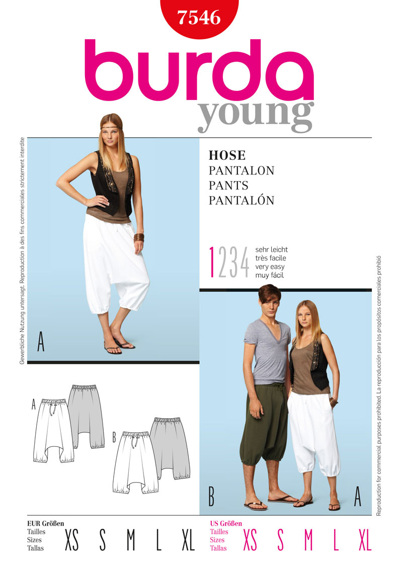 Harem pants for fashion daredevils or just for lounging about. The fashion hit for ladies (variant A) and for men (variant B). Quick and easy to sew, easy to combine and so very comfortable.