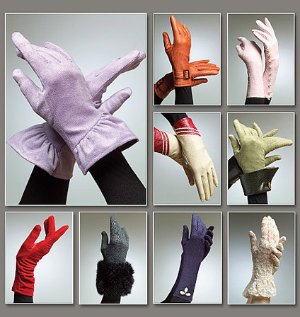 GLOVES: Package includes patterns and instructions for eight pairs of unlined gloves. Each glove is available in size Small (7"), Medium (8") or Large (9").