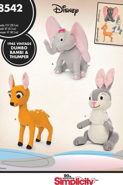 If you love vintage Disney, here’s your chance to recreate an authentic 1945 huggable, stuffed Dumbo (11-1/4"), Baby (18"), and Thumper (16").