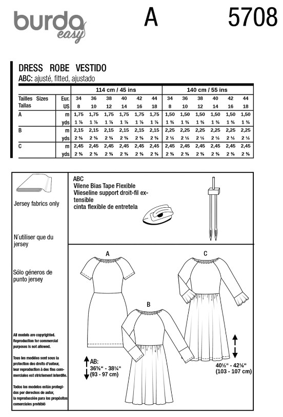 This dress comes in three easy sewing patterns! The striped jersey dress with a flared skirt and long sleeves is a must-have for any wardrobe. The slim shift dress in caramel is quick to sew and has an elegant look. The day dress offers a figure-hugging fit, feminine flounces and comfort thanks to organic jersey with elastane.