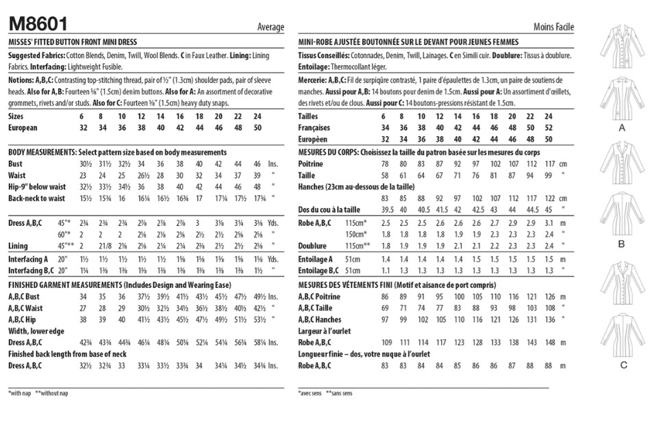 Fabric Suggestions: Cotton Blends, Denim, Twill, Wool Blends. C in Faux Leather. Lining: Lining Fabrics. Interfacing: Lightweight Fusible.
